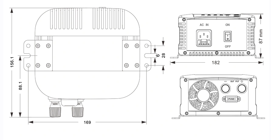 Dibujos mecánicos: (156,1 × 182 × 87 mm)