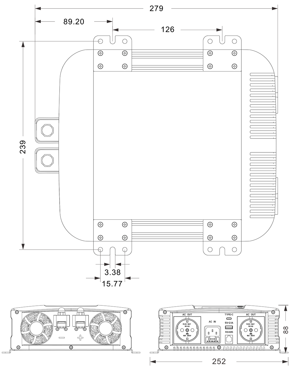 Dibujos mecánicos: (279x252x88mm mm)